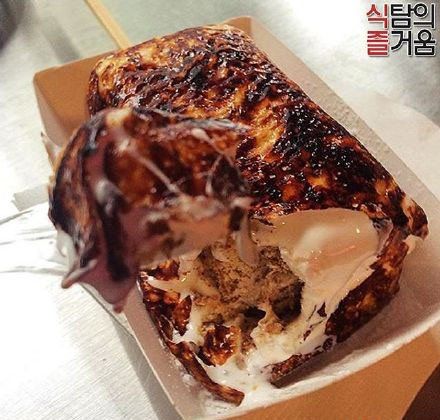 图片介绍 : 韩国有名的小吃烤棉花糖冰激凌,外层有点酥,吃起来甜而不腻,美味诱人。你美图库为大家推荐一组韩国烤棉花糖冰激凌图片超美味,希望你们喜欢。